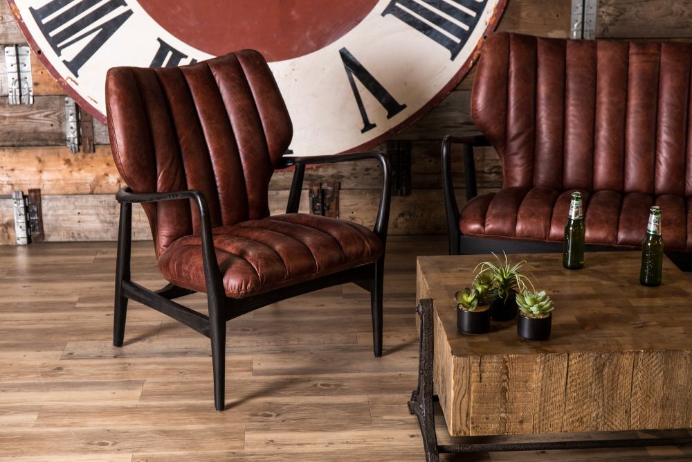 The chair is available in conker brown and chestnut leather. The conker brown ‘Ludlow’ chair has a more aged appearance, giving it an authentic vintage look. The ‘Ludlow’ chair in chestnut has a red tinge, and a shinier patina compared to the conker brown version.