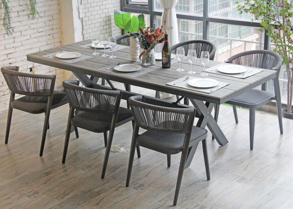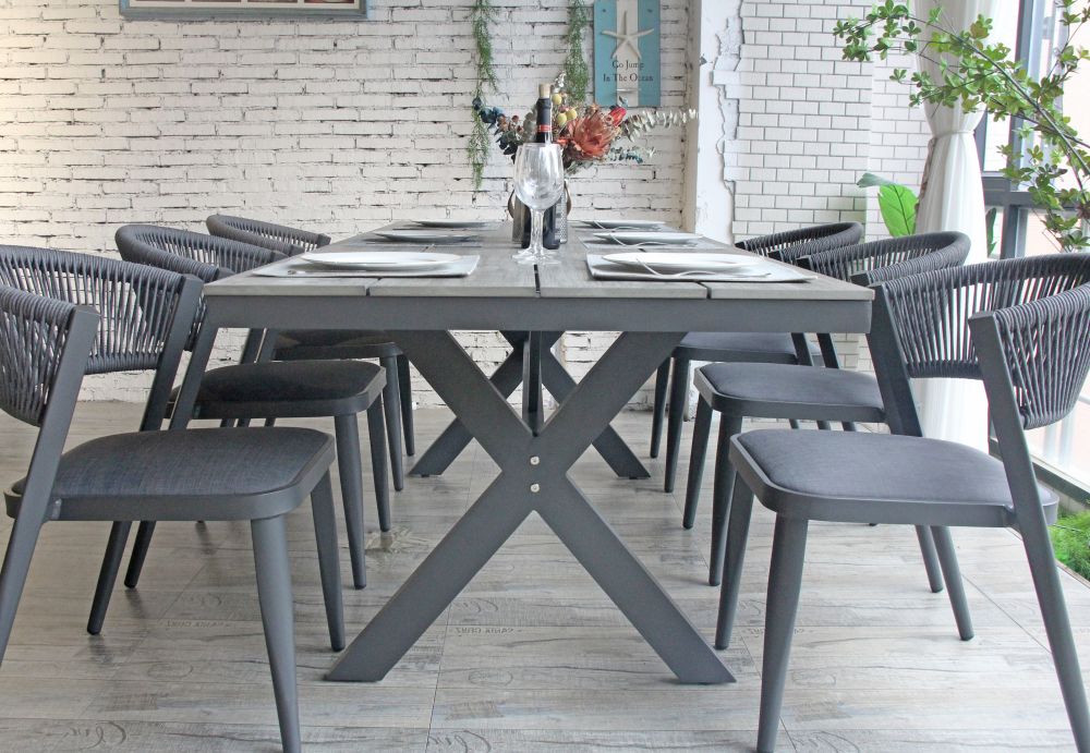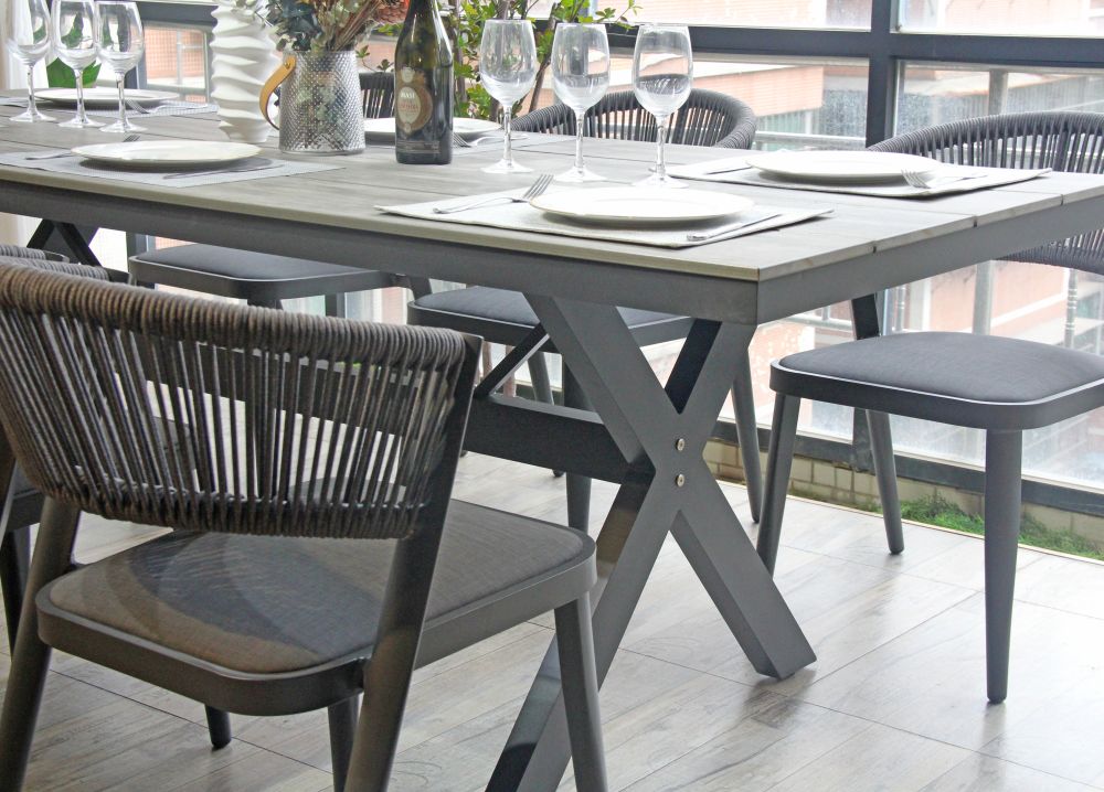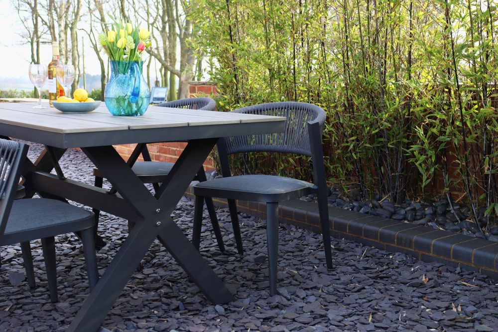 - An aluminium frame with a durable powder-coat finish to the table and chairs