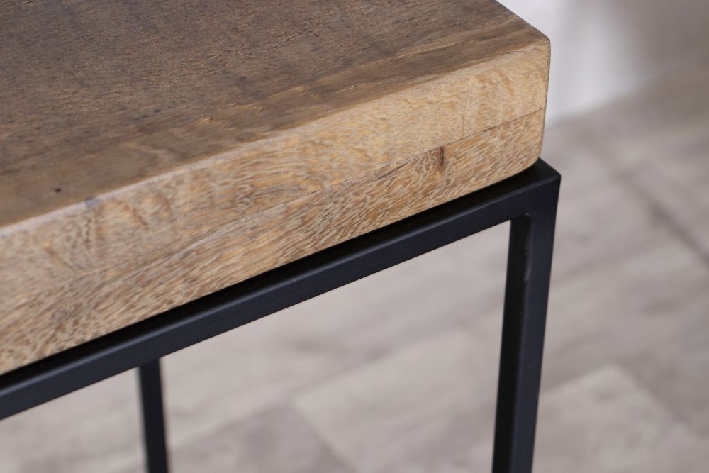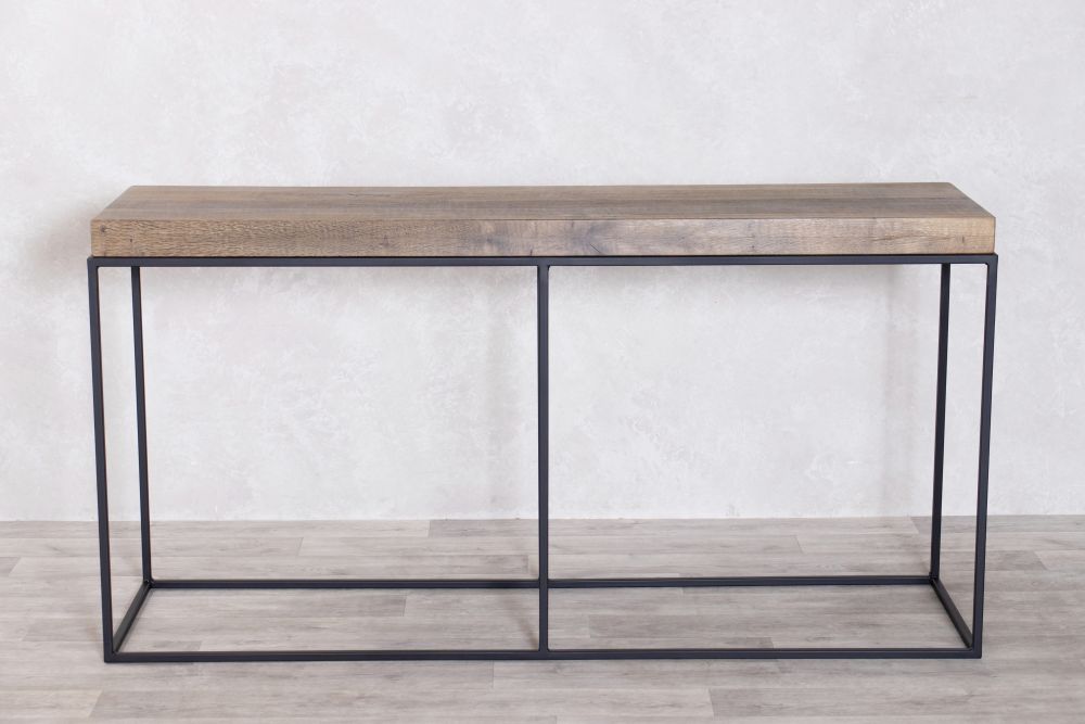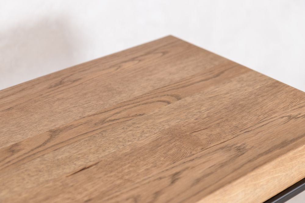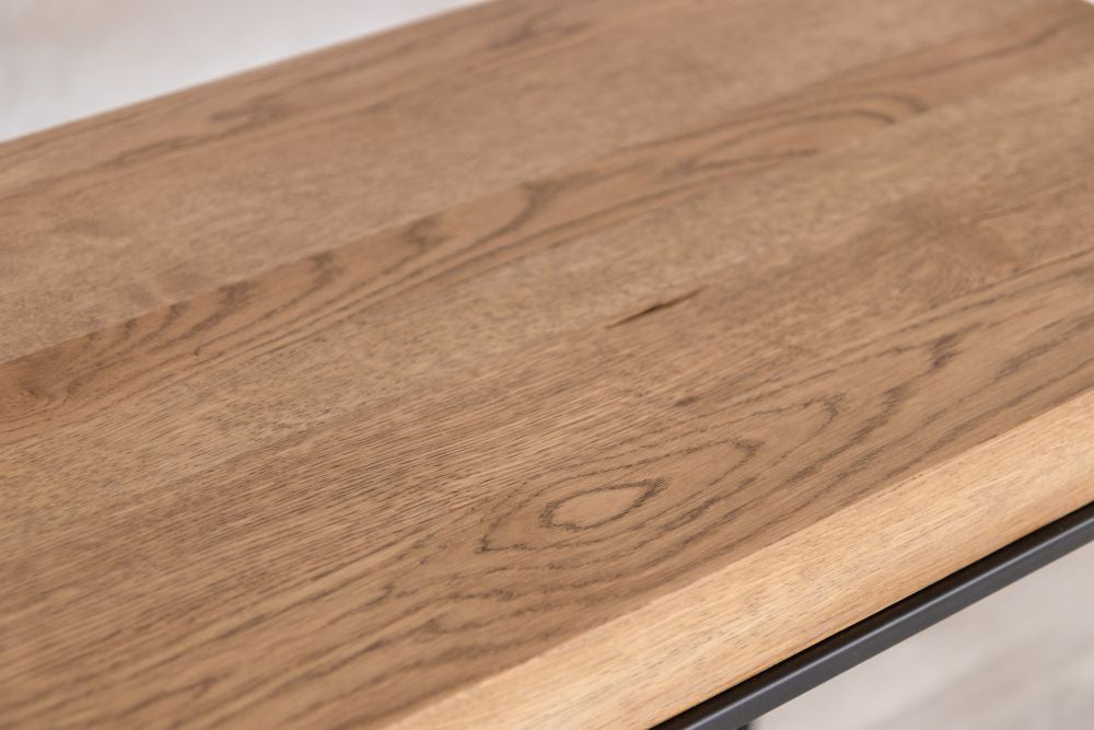 The high-quality solid oak top and solid steel frame is available in three neutral colours; Silverback, Weathered and Pebble Grey.