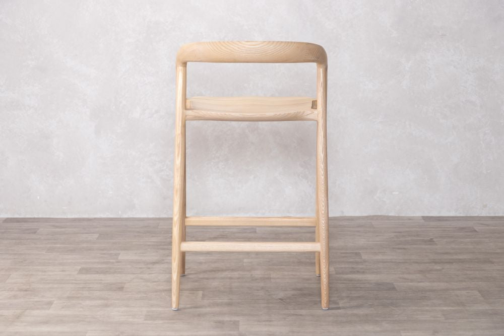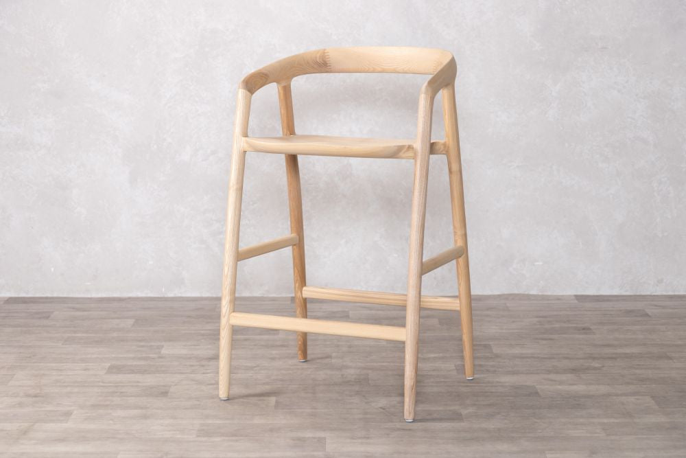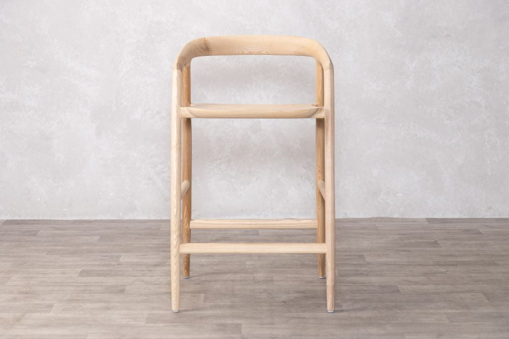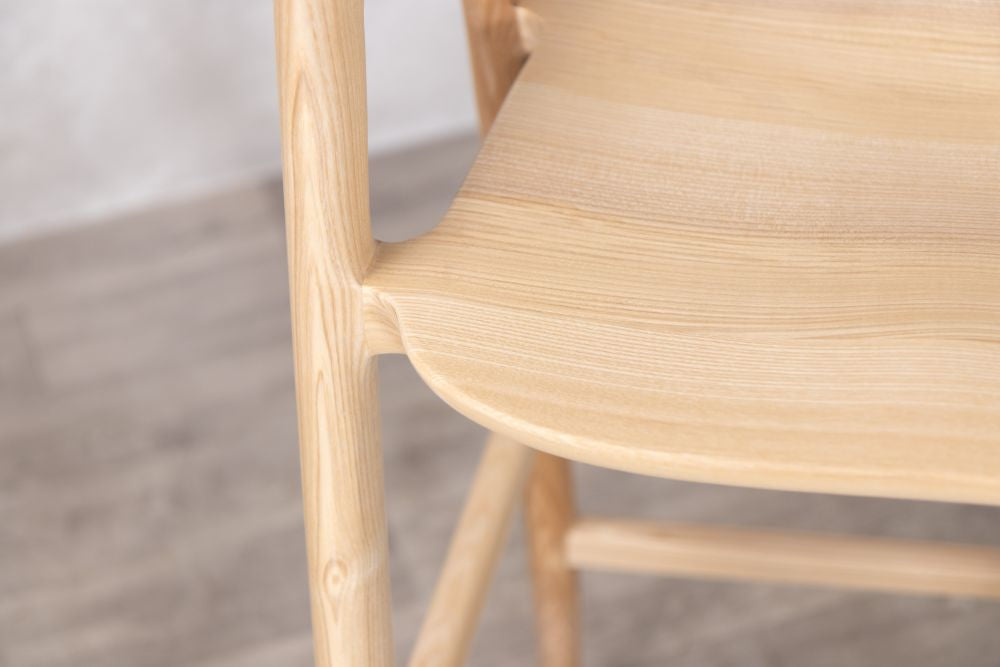 Invite effortless nature-inspired style to your dining table with the handmade Mulberry Bar Stool. The sleek lines and curves of the chair imitate Scandinavian style, providing your dining space a light and airy feel. Crafted from high-quality Solid Ash Wood, the Mulberry emphasizes the earthy tones of your chosen space. The artistry and precision involved in creating flawless joints showcase the exceptional quality of these stools, allowing them to stand out as the best quality seating on the market.