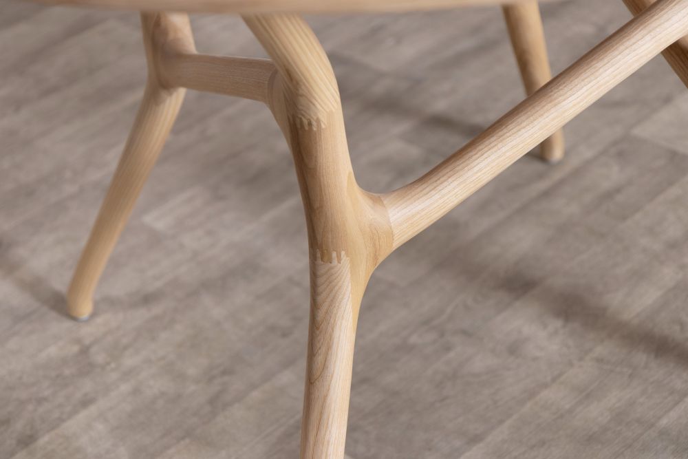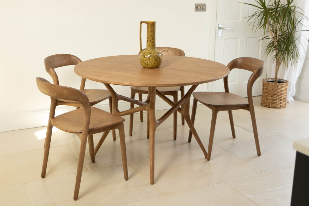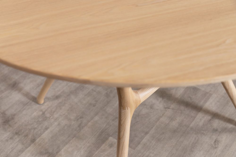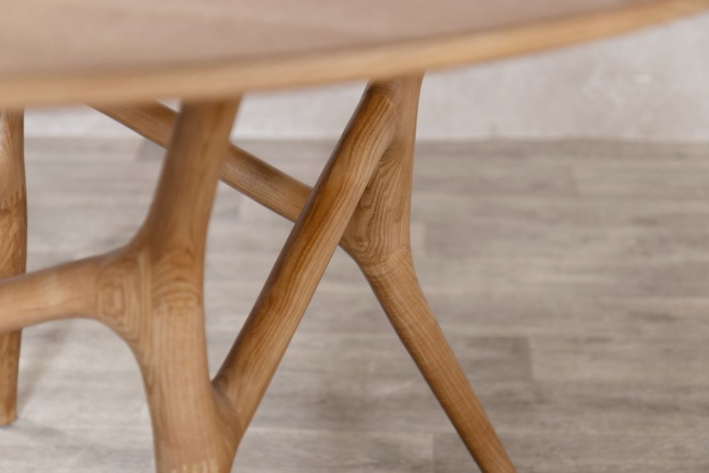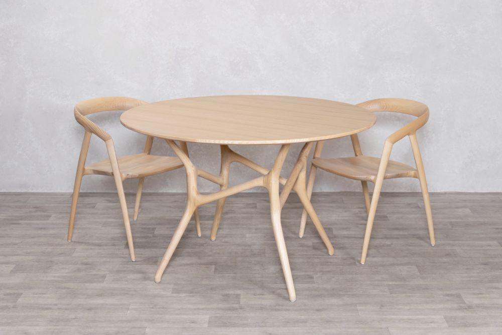 This handmade range features a sleek solid ash wood tabletop that sits elegantly on solid ash wood legs, enhancing the earthy tones of the table.