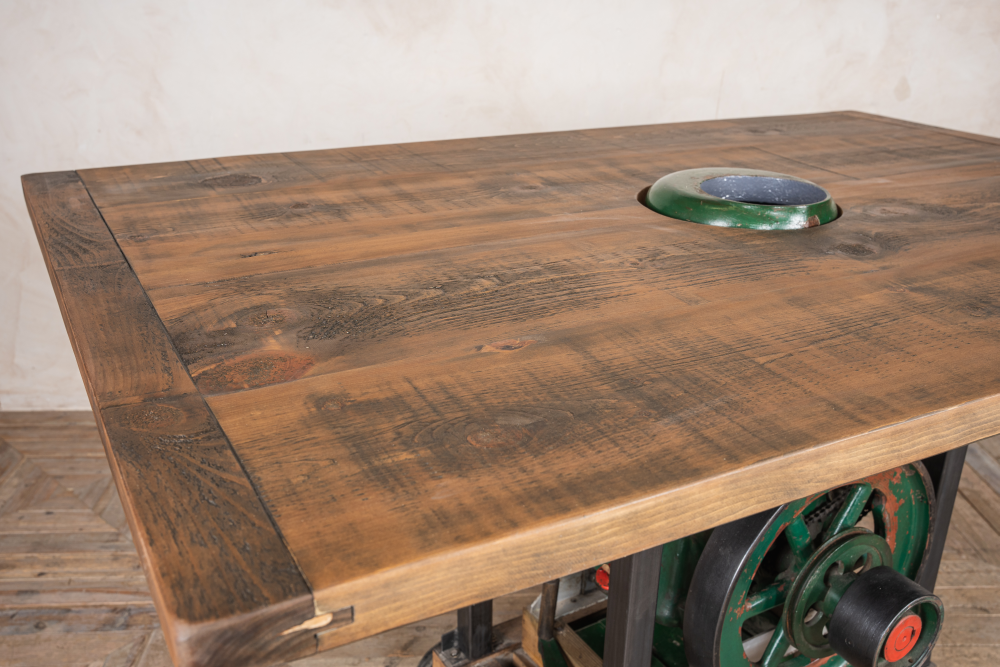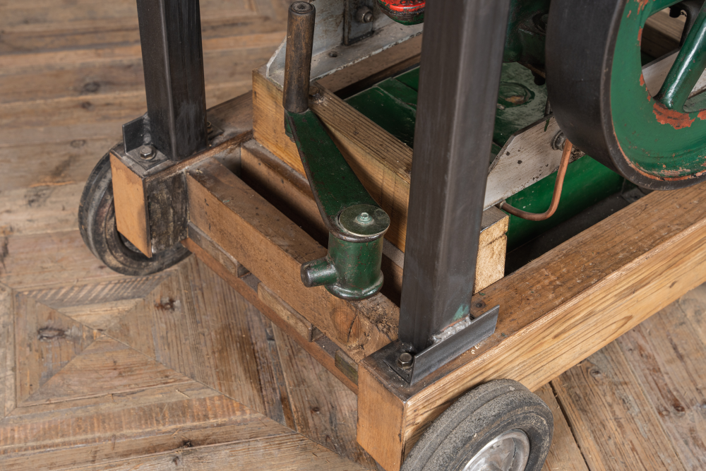 Looking for that all important ‘wow’ factor for your home bar or restaurant? This Industrial Style Engine Bar Table is a fantastic statement piece for your space. Upcycled from an old engine, the top of the engine peeps through the middle of the wooden table top. There is also a hole in the top of the engine’s cylinder cooling head, which you can fill with ice to keep your wine chilled!