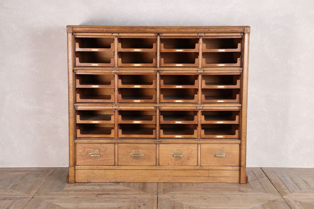 If your space needs some extra storage, this Large Haberdashery Drawer Unit is a show stopping way to display all your possessions. Featuring 24 glazed doors that lift up to reveal internal oak drawers. Many of these units are used for collectables or collecting handbags or ladies shoes!