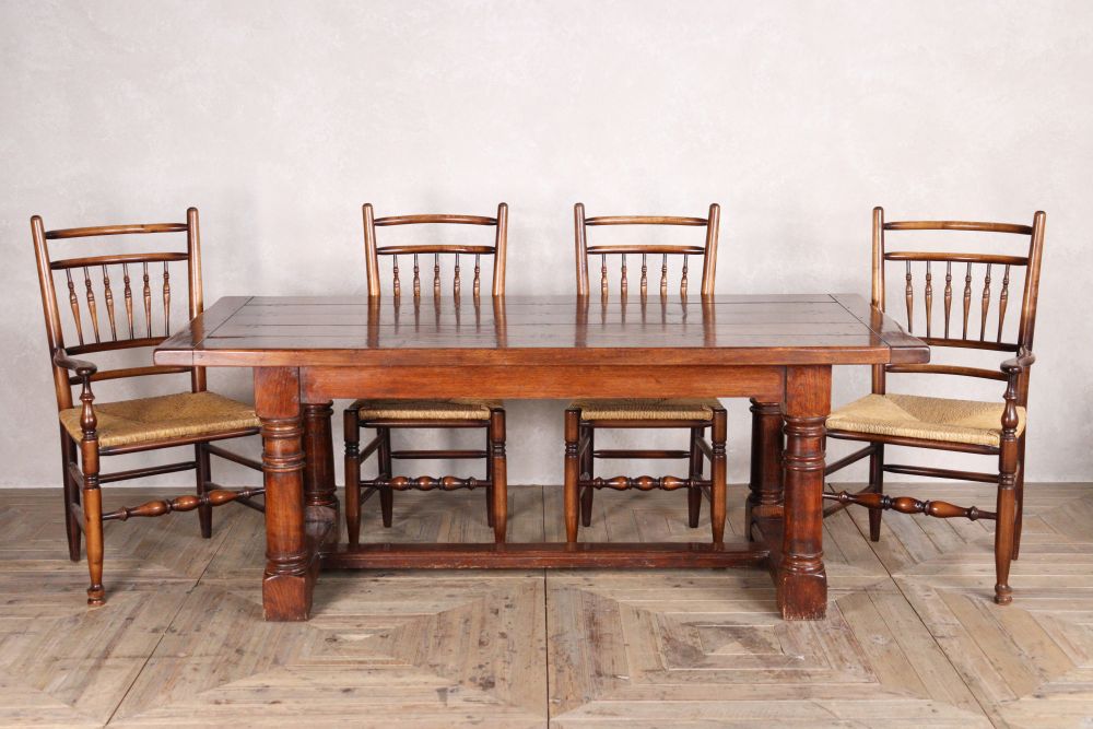 Oak Refectory Table and Six Stick Back Chairs