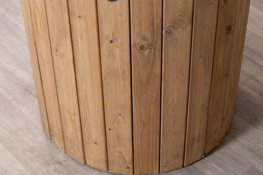 The Pine Slatted Drum Bar Table is a show stopping centrepiece, designed to elevate any social setting, whether it’s a bustling restaurant, a rustic bar, a cosy pub, or an elegant wedding venue. It blends rustic charm with modern sophistication, featuring a pine table top for warmth and a slatted pine drum base for durability and industrial style. Whether you're planning an intimate dinner at home or hosting a grand celebration, the Pine Slatted Bar Table is sure to make a lasting impression.