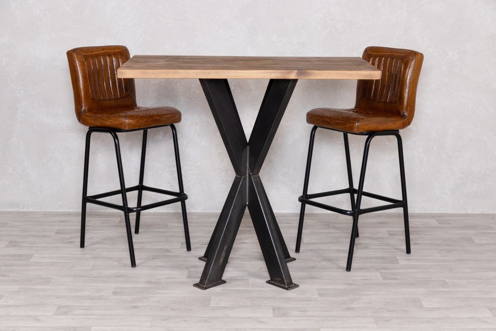 Square Pine Top (80x80cm) Round Poseur Base