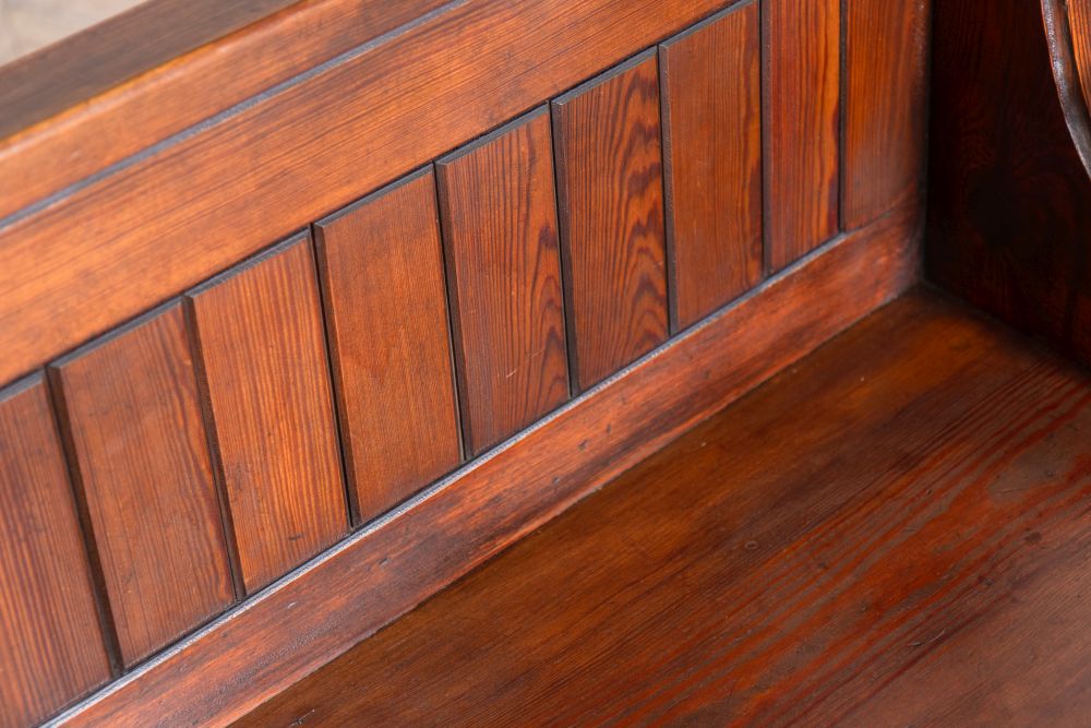 These Vintage Solid Pitch Pine Church Pews are crafted from high-quality pitch pine and are available in small and extra-large sizes. These pews are perfect for seating groups easily in commercial spaces or as unique dining benches in your home. Each piece features intricate woodwork and a rich patina, adding character to any room. These pews blend classic vintage charm with modern utility, suitable for various spaces. The church pews are a great opportunity to own a piece of furniture with a unique story and beauty.