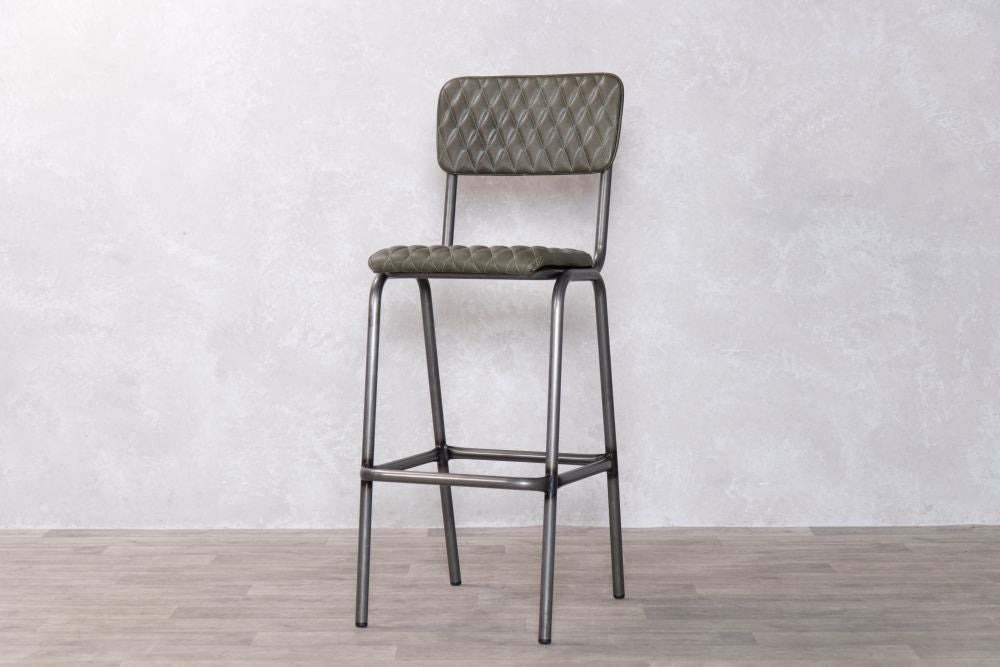 The quilted leather upholstery adds intrigue to the bar stool and can be mixed and matched in colours. The industrial bar stools can also be paired with the matching dining chairs, to complete your space.