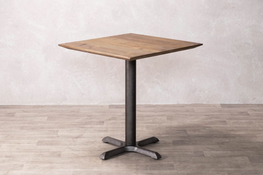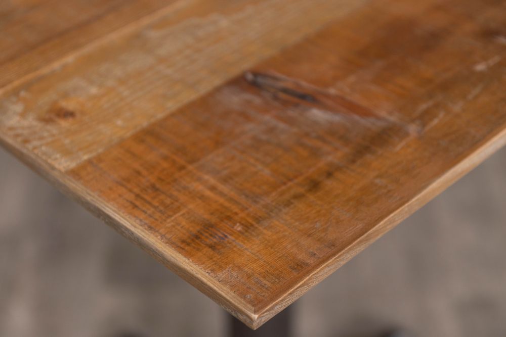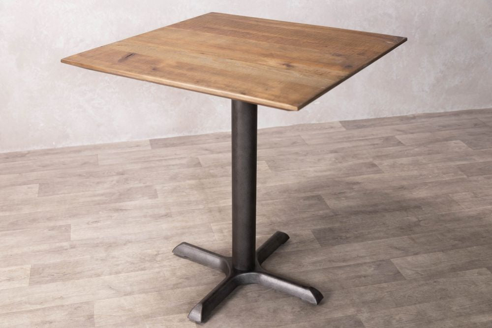 With a gunmetal base and adjustable feet, this practical and stylish table is the perfect choice for a busy bistro or a trendy restaurant. The reclaimed pine top has a stunning satin lacquered finish for extra protection, so you can wipe any spillages off easily. This restaurant table also comes flat packed and is very easy to assemble!