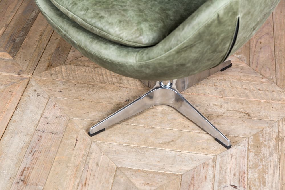 The chair is available in two colours: matcha and conker brown. The leather upholstery is slightly distressed to give it an aged appearance. The chair also comes with a removable cushion for added comfort.