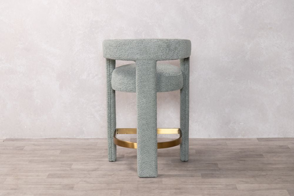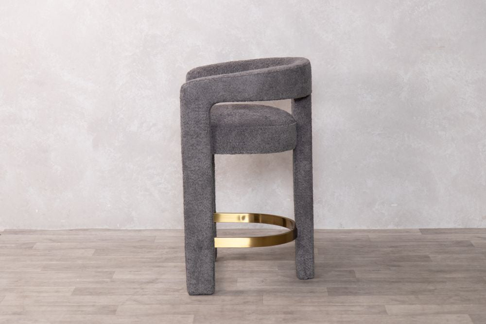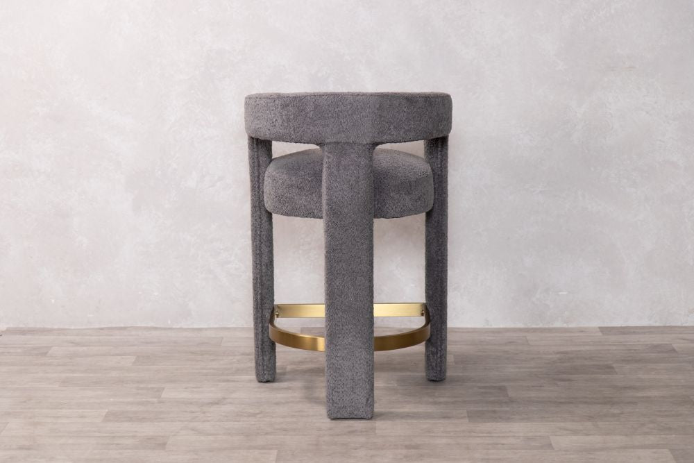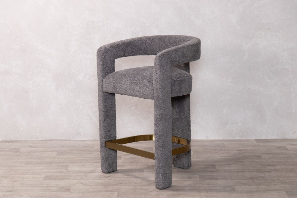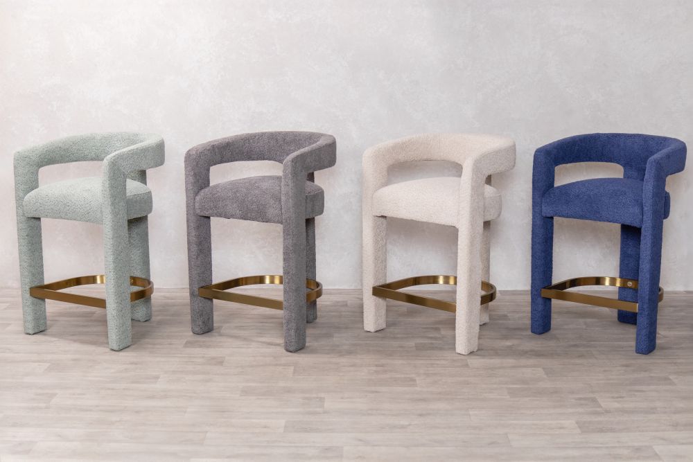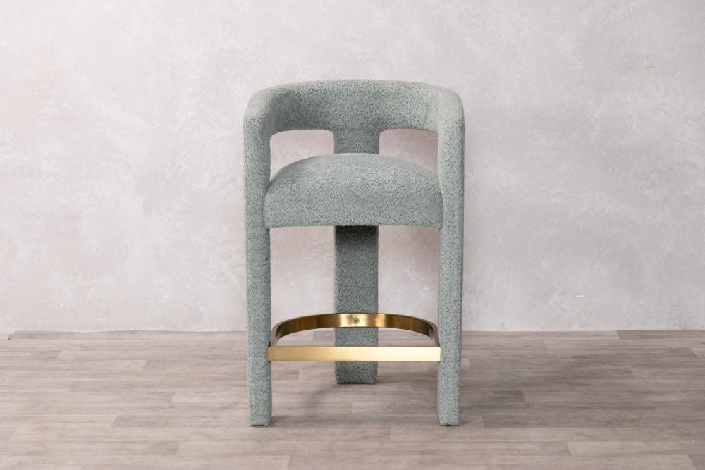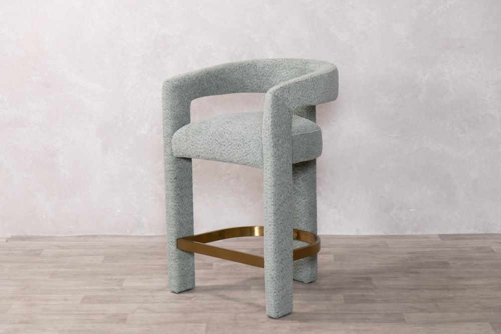 The Ruby Counter Stool is where Scandinavian simplicity meets modern elegance. This stunning piece features a unique curved design, which is fully upholstered in a premium linen-look fabric and a gold brass stainless footrest to add contemporary flare. The Ruby presents a comfortable and supportive seat, whilst the plywood internal frame ensures durability.
