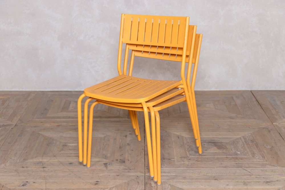 Yellow Outdoor Metal Restaurant Stacking Chairs - Set of 3