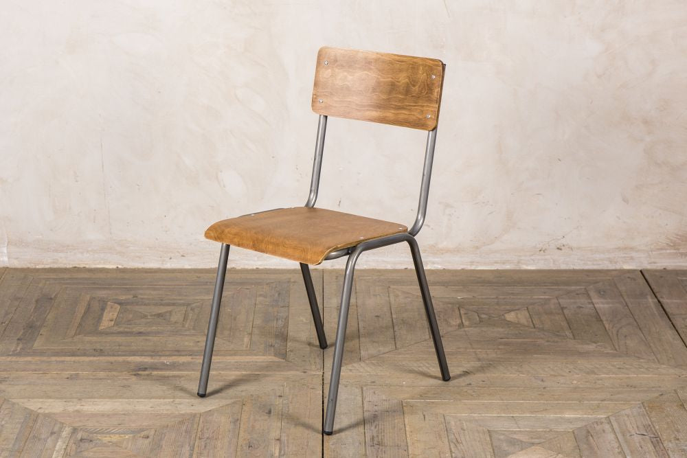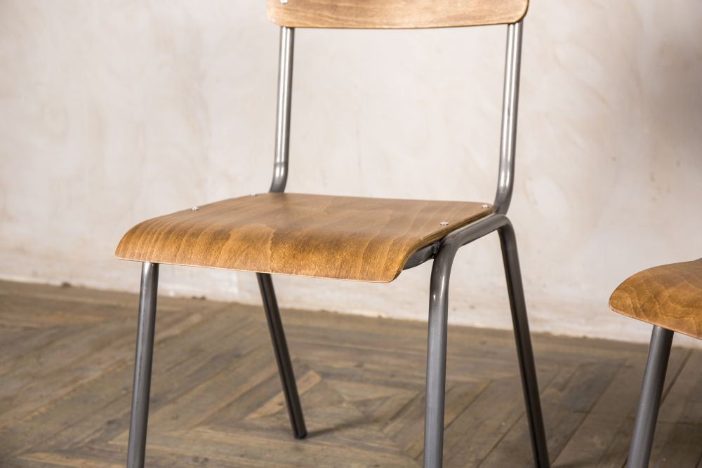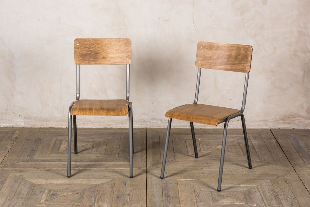 The ‘Battersea’ chair looks just like a 1950s/1960s school chair. Sticking to this iconic style, these chairs have plywood seats and burnt iron, powder-coated, tubular steel frames.