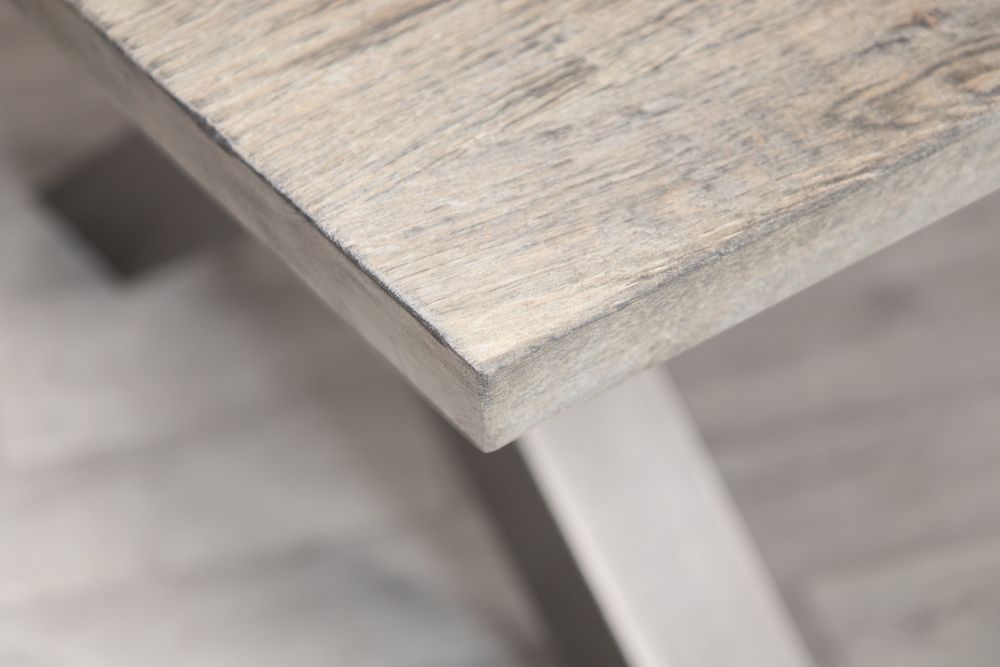 Handcrafted from good quality timber and metal, this modern oak dining table combines natural materials and industrial style. The silverback coloured oak table top showcases authentic knots and marks, while the unique x-frame base gives this industrial dining table a contemporary edge.