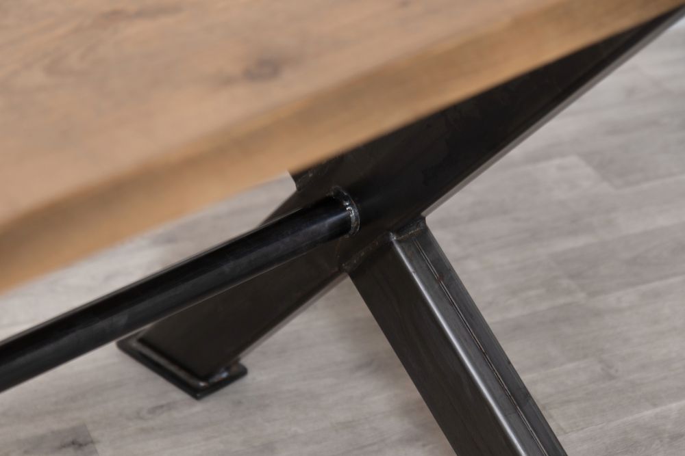 Our Pine Top X-Frame Dining Table is based on principal industrial design features. The sleek X-Frame base, made from solid steel and featuring a tubular cross stretcher, has become an iconic symbol and suits so many interiors.