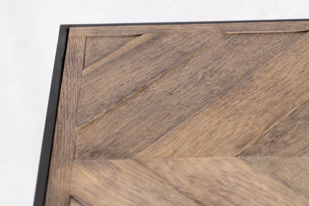 The high-quality solid oak top and solid steel frame is available in three neutral colours; Silverback, Weathered and Pebble Grey.
