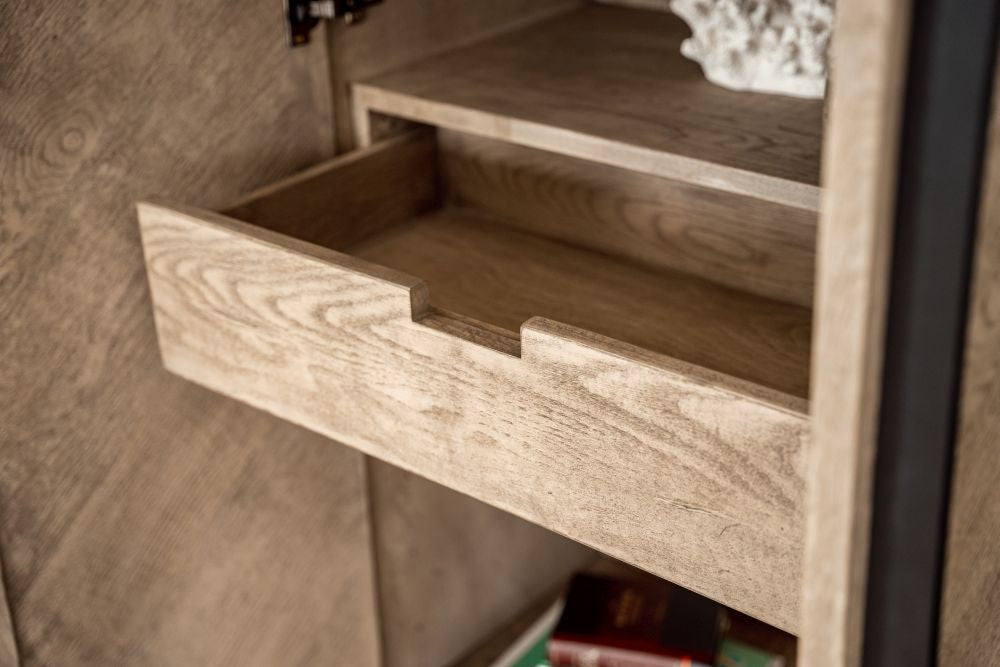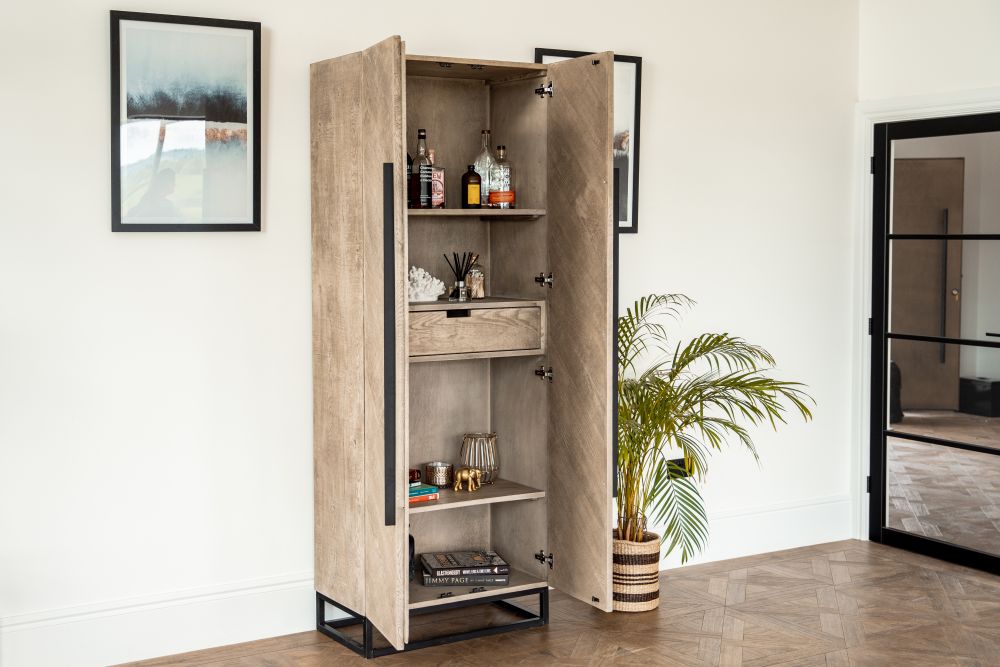 A matching sideboard and TV stand are also part of the Tiverton range. The oak cupboard range matches our Knightsbridge and Mayfair dining tables, which feature the same chevron pattern to their table top.