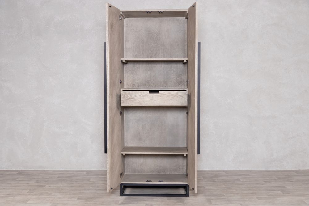 The Tiverton Tall Oak Cupboard has contemporary and classic elements that will suit plenty of home interiors. This tall oak cupboard with shelves is made from high-quality oak and sits on sleek black legs with matching black handles, bringing industrial style to your interior.