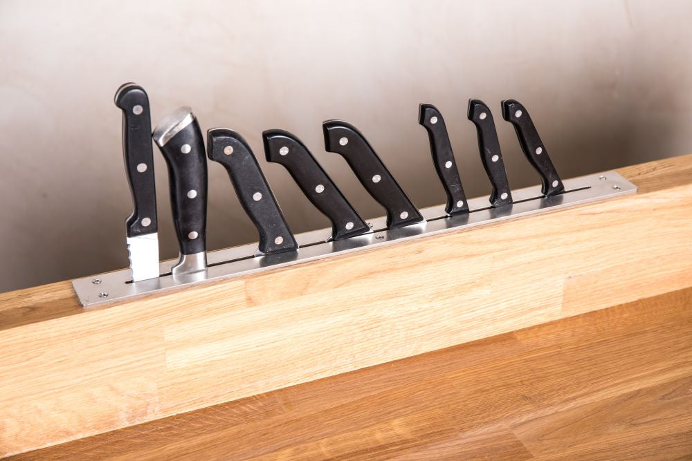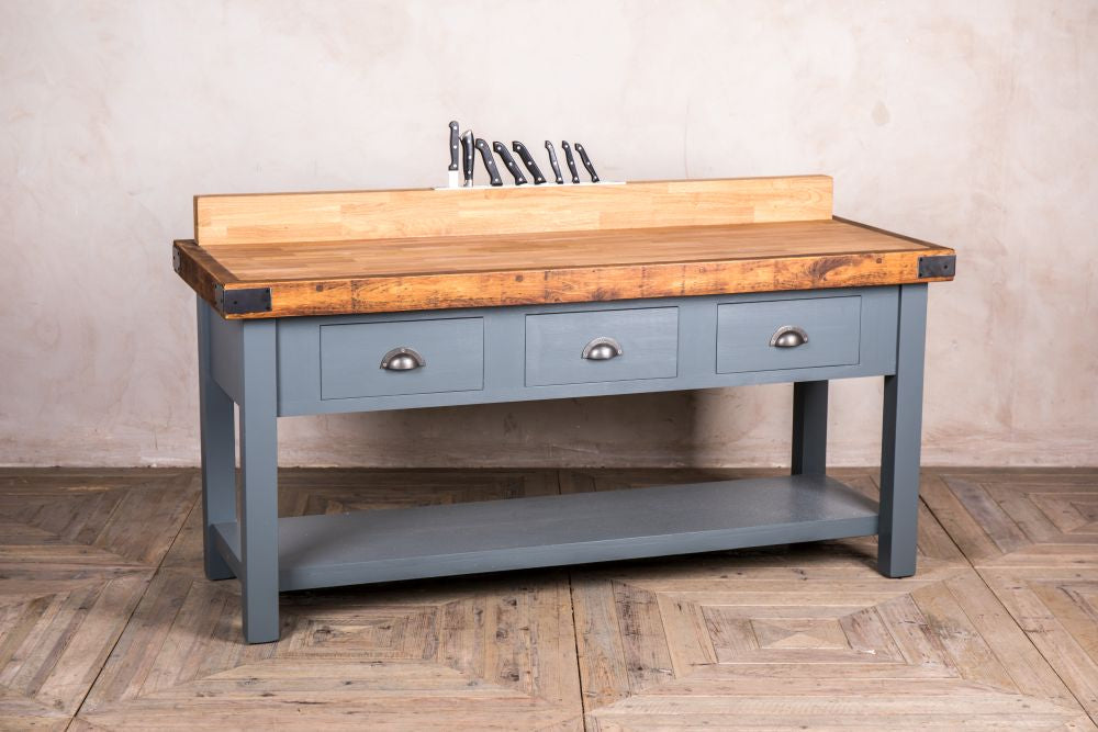 Complete with a stainless-steel knife rack to the rear upstand, our Bespoke Oak Top Butcher's Block Sideboard oozes country charm and practicality.