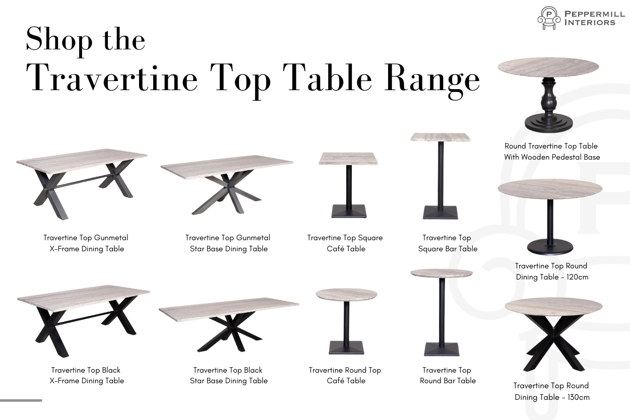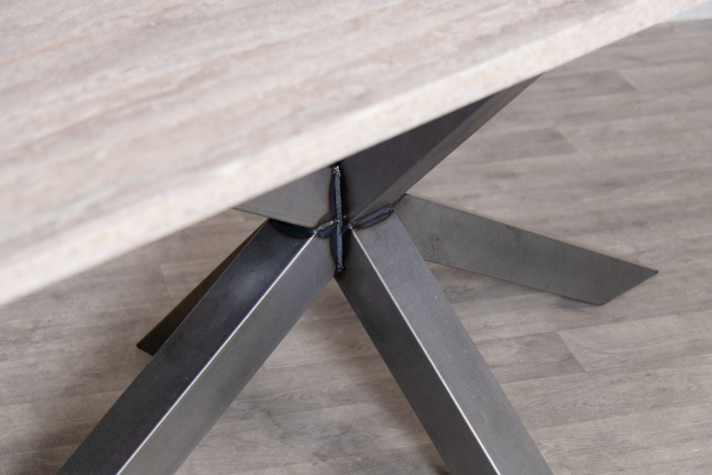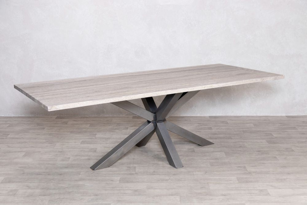 Travertine Top Gunmetal X-Frame Dining Table Range