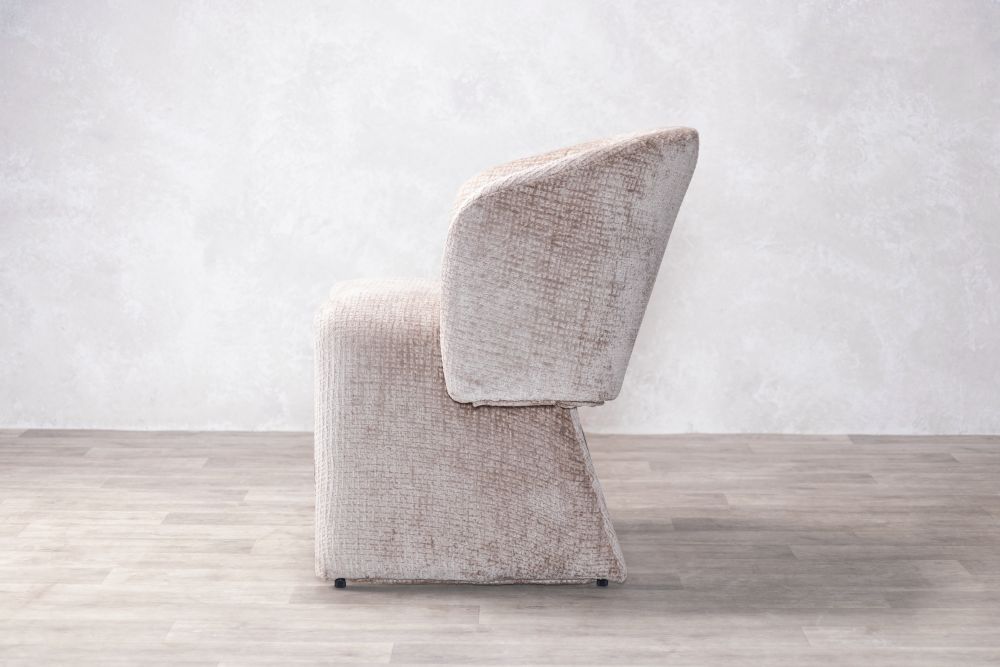 The Valentina Dining Chair is where Scandinavian simplicity meets modern elegance. This stunning piece features a unique curved design, which is fully upholstered in a premium chenille fabric with a plush foam-filled seat. The Valentina presents a comfortable and supportive seat, whilst the plywood internal frame ensures durability.