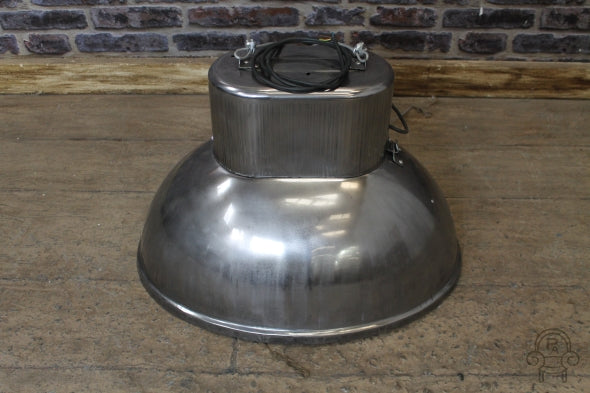 These high-quality, stripped and polished, original 1960s factory lights are in excellent condition and have all been rewired.