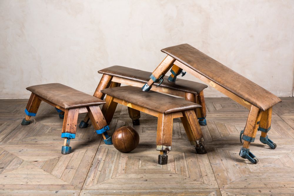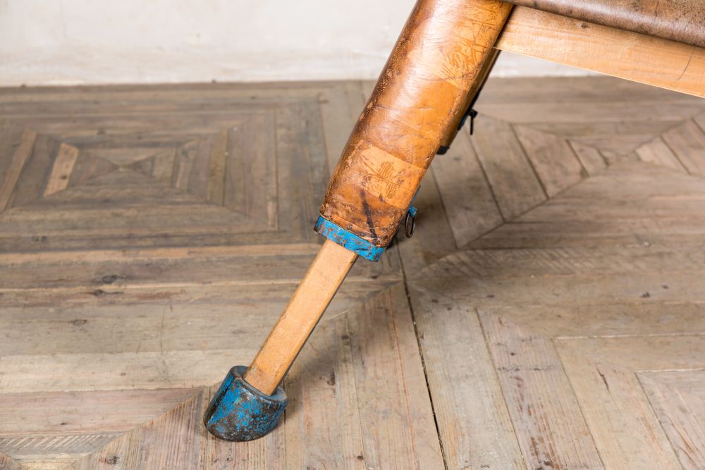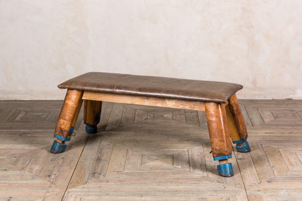 Style our vintage gym bench in your hallway and bring a bit of old school magic back into your home. The wooden frames and leather top will bring that sought after, aged charm back into your home. Interesting marks have been acquired over time, as these were once used in a high school, so it really adds to the natural character. It makes a great coffee table, too!