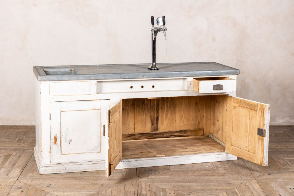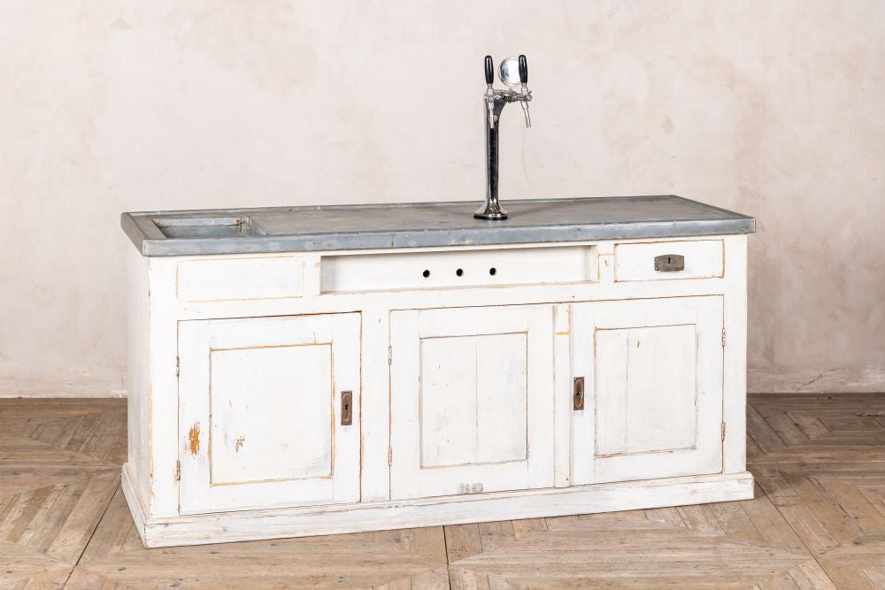 A kitchen island with a twist, or a unit for your very own bar, this Vintage Home Bar Unit has a lot of vintage style. With a zinc top and sink, the bar unit has cupboard storage underneath, a drawer and most notably, comes with its very own tap.