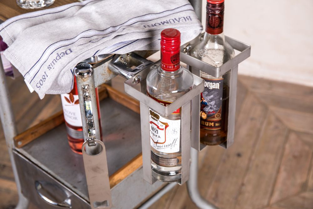 The trolley is best suited to an industrial style interior and is moveable, which makes it an essential piece of equipment for distributing drinks to your guests at parties!