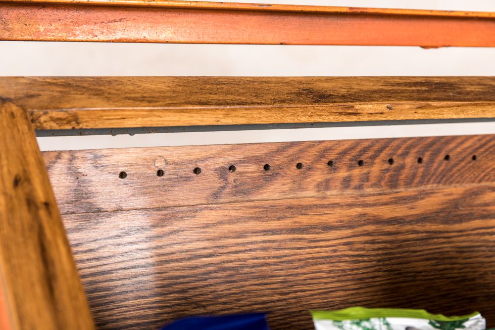 As this is a vintage item, it does show signs of wear and tear with marks and scuffs to the shelving rack which we feel only adds personality and character to this vintage item.