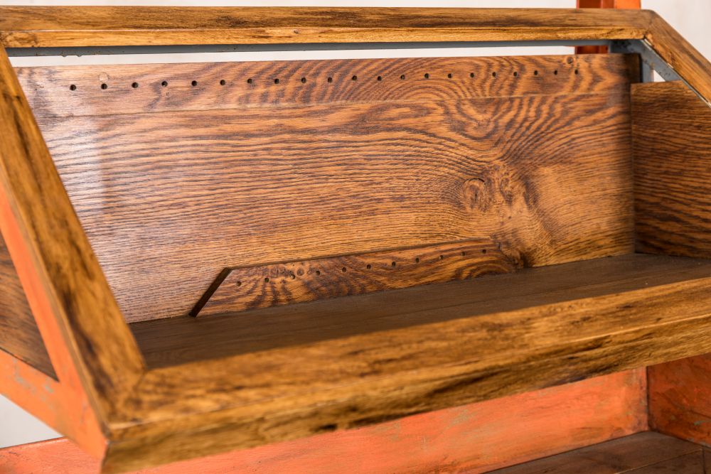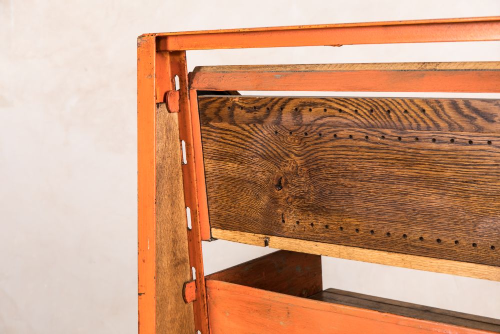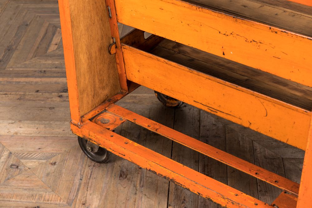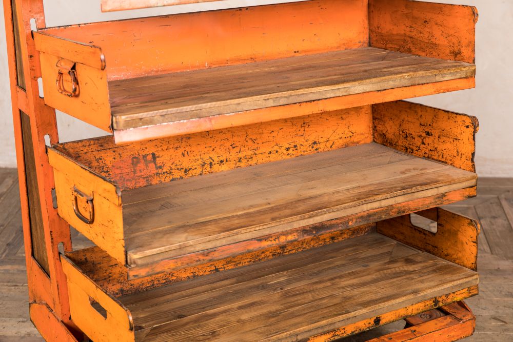 The shape of this robust, vintage shelving unit is certainly interesting and will catch the customer’s eye. Additionally, the shop display stand is on moveable wheels so you can wheel it towards your shop exit to stop your customers in their tracks or towards checkout counters to tempt customers into picking up one last purchase. With a worn orange patina, wherever you choose to use this shop display stand, it is sure to display your products in style.