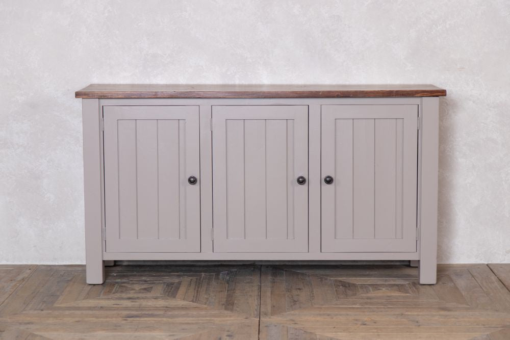 A reclaimed storage option that would fit beautifully in farmhouse style kitchen or entranceway, the Reclaimed Pine Sideboard provides ample space for all those home necessities to be neatly tucked away. Featuring three pine doors that reveal three spacious storage spaces, this sideboard boasts a stunning grey colour that will seamlessly blend into contemporary or farmhouse inspired home or commercial space!