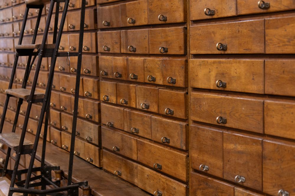 Vintage Shop Haberdashery Cabinet with Rolling Ladder