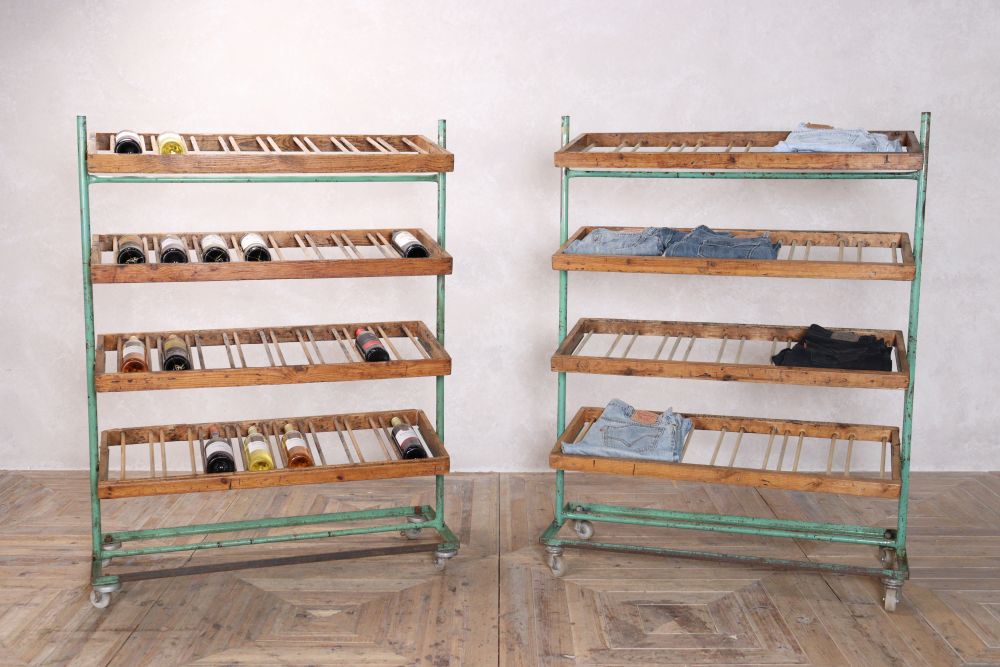 These retro display trolleys could be adapted as a shoe rack, commercial display unit and much more. Sitting on a metal wheeled frame, these display racks are a wonderful functional statement piece.