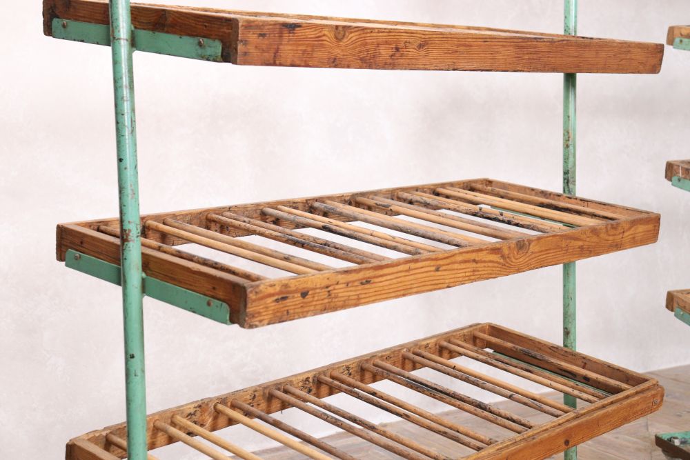 Featuring four separately spaced slatted shelves, these Vintage Shop Display Racks offer plenty of storage space, making them ideal for displaying a variety of items. This item could also make a great wine rack.