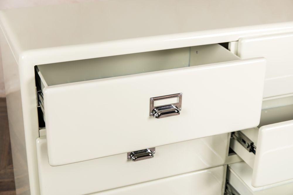 Bring retro style to your space with this vintage style chest of drawers. Choose from either ivory or gunmetal to suit your interior.