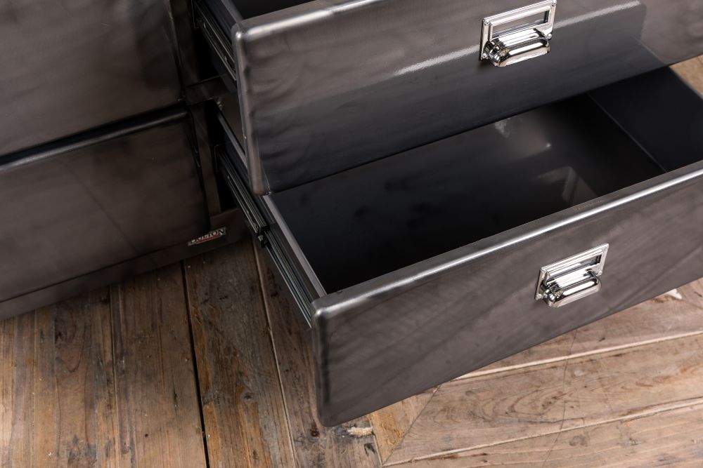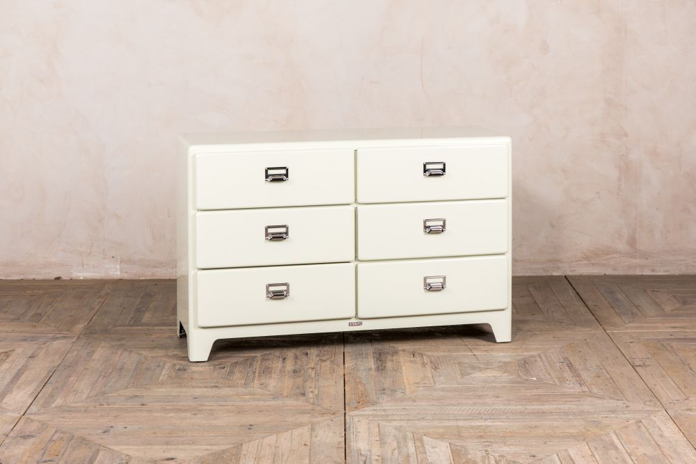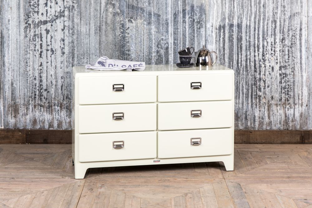 This metal chest of drawers is based off 1950s office furniture, and would suit a retro inspired cafe or American style diner. It provides ample storage for condiments, menus and napkins.