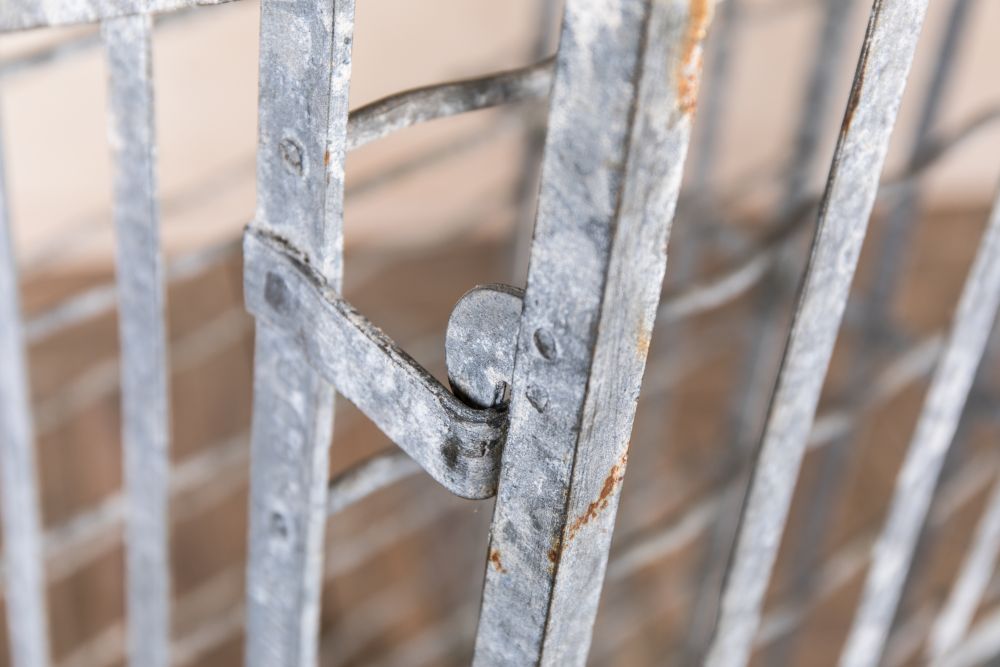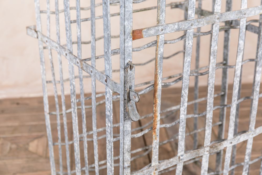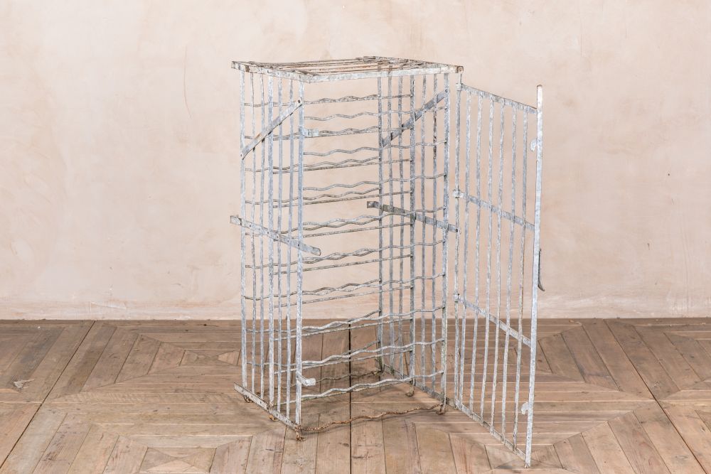 The wine cage is lockable. It is made from metal and has rusted slightly over the years. The marks of wear and tear add to its industrial style and authenticity. As it is a vintage item, please allow for signs of use.